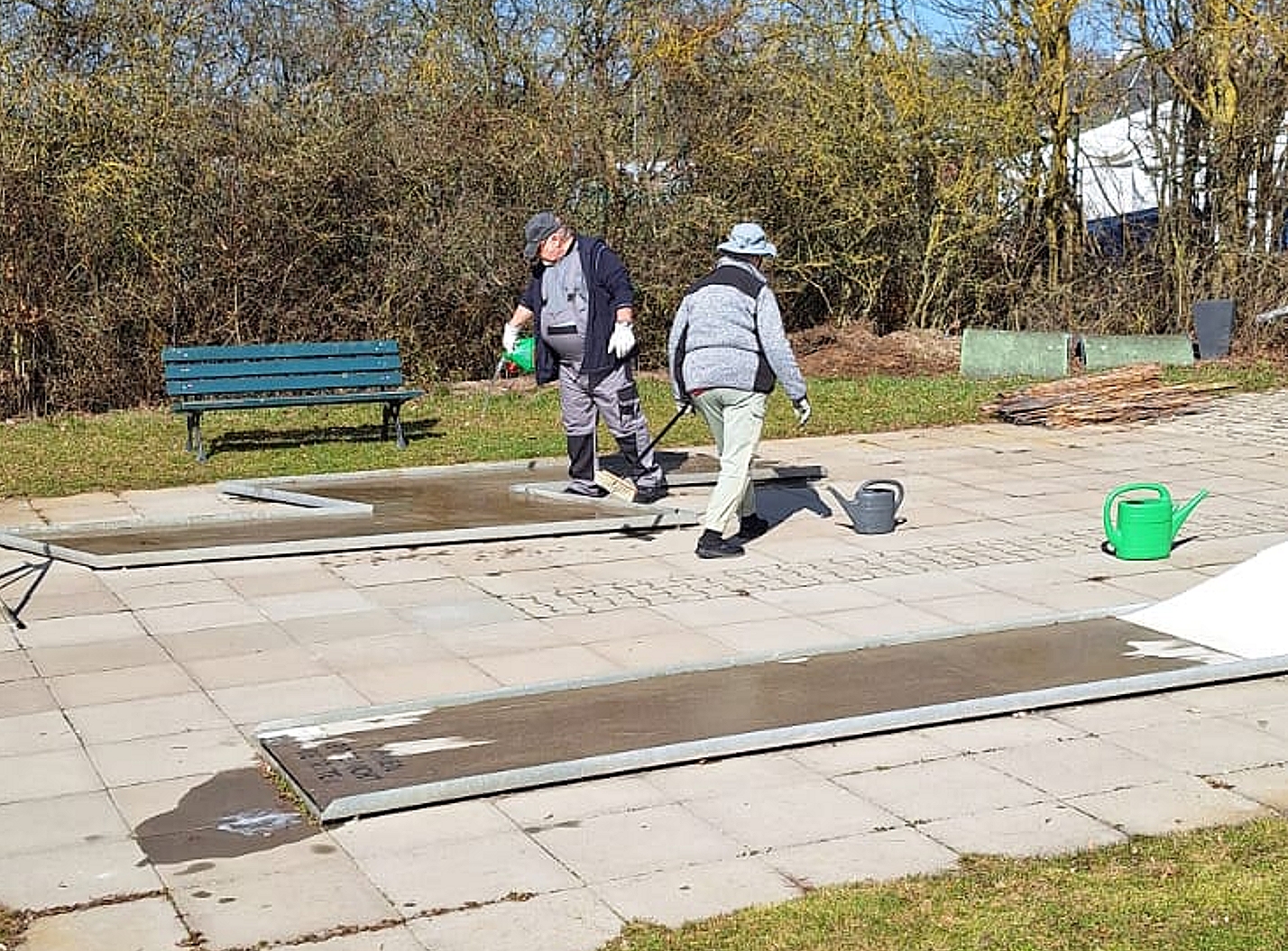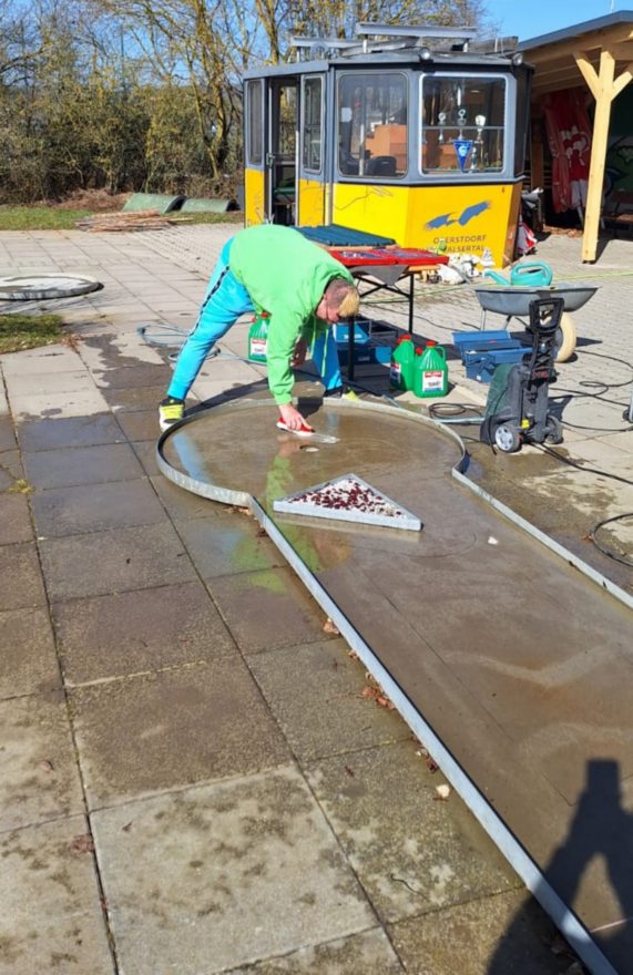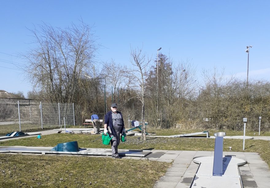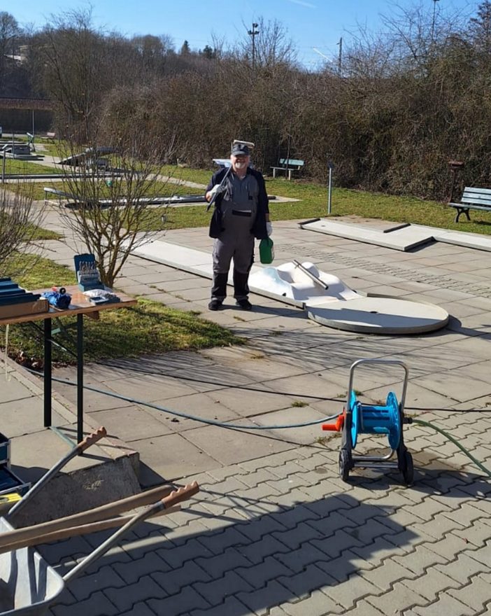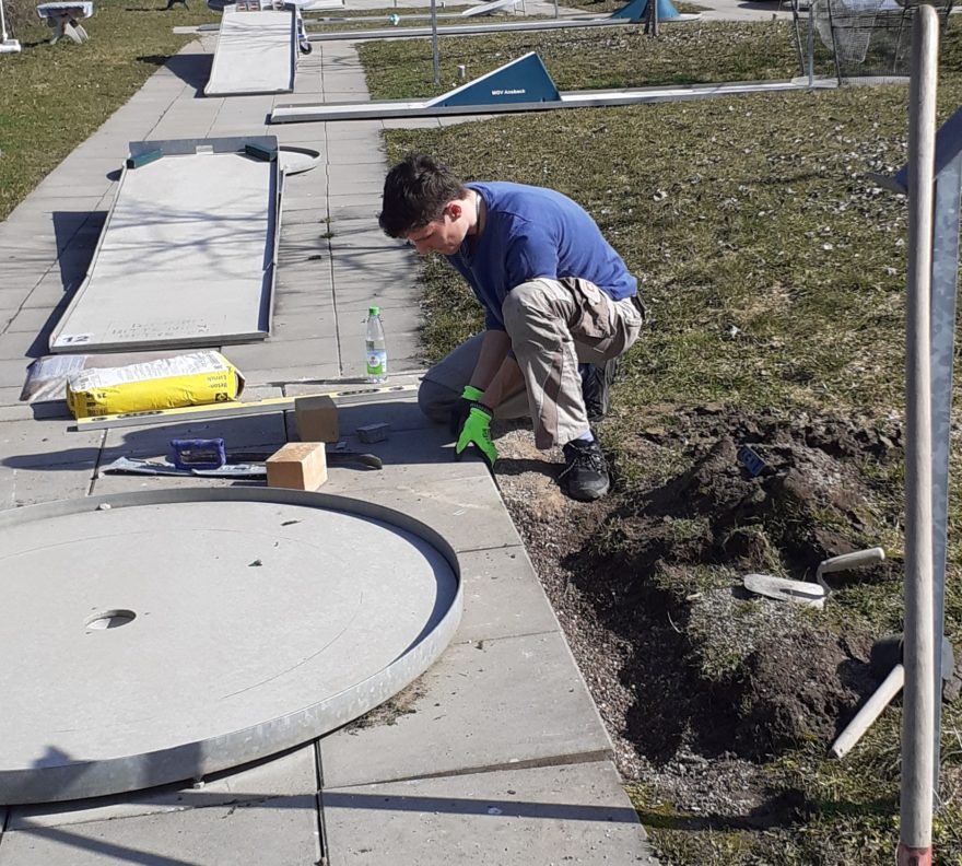 Minigolf Ansbach – MGV Anlage auf Vordermann gebracht, Bahnen gesäubert, Wasserbecken verkleidet, Platten am Winkel in Ordnung gebracht.